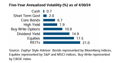 - Bonds continue to offer lower volatility than other yield producing asset classes and tend to zig when equities zag helping to lower portfolio volatility.